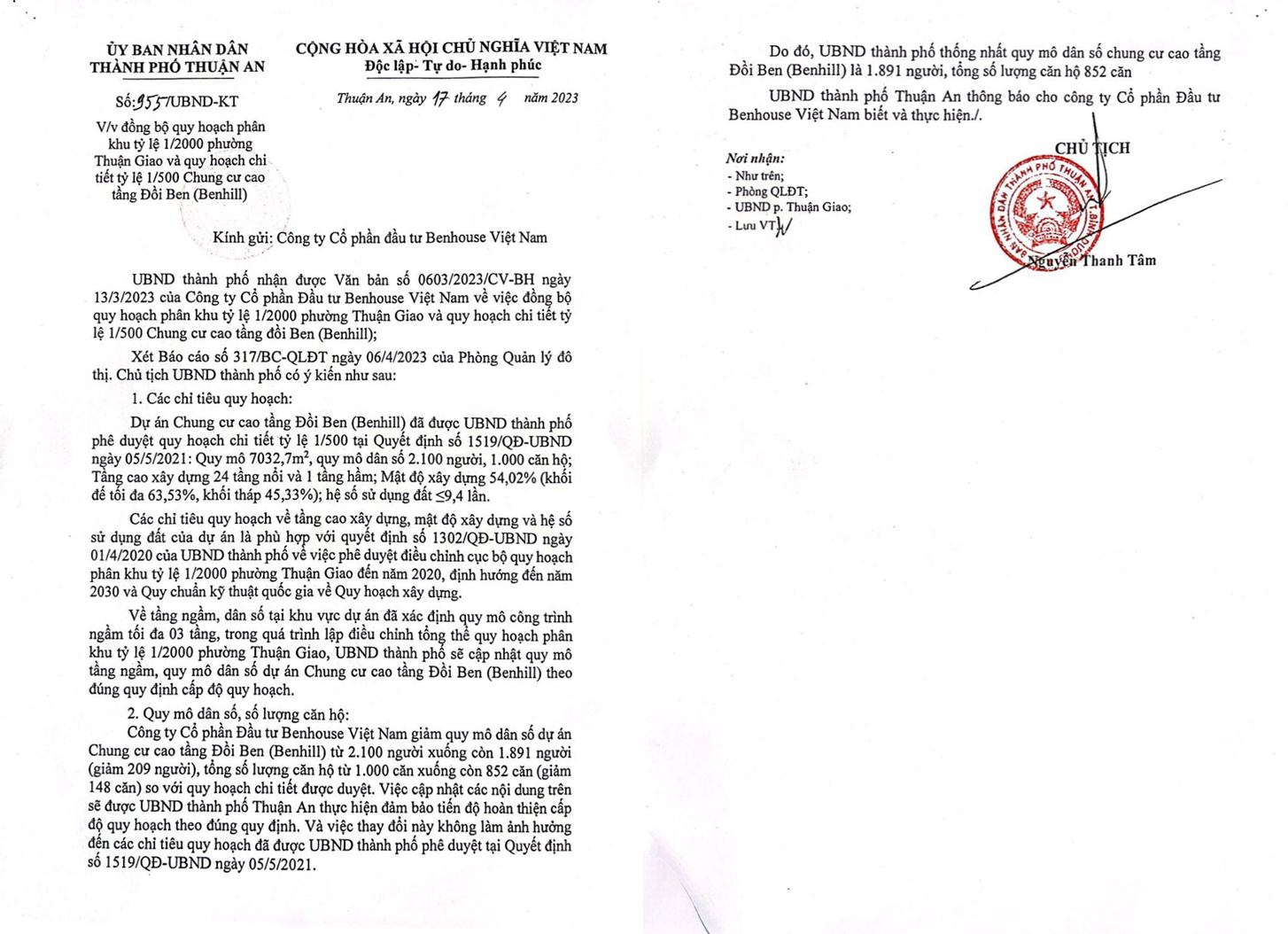 Chung cư BenHill được UBND tỉnh Bình Dương phê duyệt quy hoạch 1/500 – điều kiện tiên quyết để triển khai xây dựng dự án. Đây là bước xác nhận chính thức rằng dự án nằm trong khu vực được phép phát triển đô thị, đảm bảo không vướng quy hoạch treo hoặc nằm trong vùng giải tỏa.